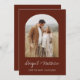 Personalize este Arco de Foto Boho Terracota Marrom Save The Date Duplo com sua mensagem e detalhes. Este convite chic inclui tipografia moderna e elegante com escrita à mão estilosa para a celebração especial do casamento a ser realizado.