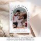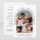 Elegante anúncio de casamento íntimo ou privado e convite para recepção. A frente apresenta sua foto em uma moldura arqueada e "Festa Feliz para Sempre" em tipografia serif clássica. Sob sua foto, você pode adicionar seus primeiros nomes, data e local do casamento. No verso, você pode personalizar sua mensagem em mais detalhes e adicionar detalhes da festa ou recepção e seus nomes em uma caligrafia semelhante a uma assinatura.