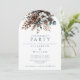 Este convite de arco de festa de noivado floral de aquarela de pinha rústica elegante e moderno pode ser personalizado com suas informações em tipografia estilosa e sua foto especial no verso. Criado por Thisisnotme©