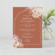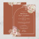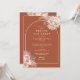 Belas aquarelas de grama pampas floral e um arco elegante enquadram os detalhes do seu chá de noiva especial em um fundo de terracota com tipografia moderna e elegante e as iniciais do seu monograma no verso. Criado por Thisisnotme©