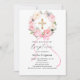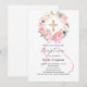 Convite Arco de grinalda floral rosa cruz menina batismo