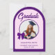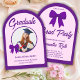 Crie uma primeira impressão elegante com este Convite de Festa de Formatura com Arco de Laço de Ginga Roxo. Com um layout arqueado moderno, padrão clássico de ginga e um charmoso acento de laço, este design destaca lindamente sua foto de formatura favorita. Perfeito para celebrações modernas, combina elegância com um clima alegre e sofisticado. Totalmente personalizável com seu nome, foto e detalhes do evento, é ideal para criar um tema de festa de formatura coordenado e memorável.