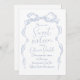 Os elegantes e doces dezesseis convites apresentam um arco de fita desenhado à mão com fontes modernas de script manuscrito em azul empoeirado. doce e simples. Excelente para a elegante e moderna 16ª festa de aniversário, divertida e divertida festa 16 fantasiosa Veja todas as peças correspondentes na coleção.