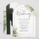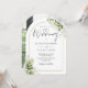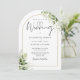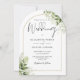 Este convite de casamento com arco floral verde botânico elegante e dourado pode ser personalizado com suas informações em tipografia chic com sua foto especial no verso. Criado por Thisisnotme©
