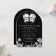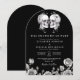 Este convite de casamento de arco de caveiras florais góticos 'até que a morte nos separe' preto e branco pode ser personalizado com suas informações em tipografia moderna. Projetado por Thisisnotme©