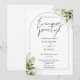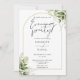 Este convite elegante de casamento com arco de ouro e folhas de vegetação botânica pode ser personalizado com suas informações em tipografia sofisticada. Projetado por Thisisnotme©