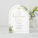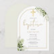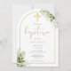 Com folhas de greenery em aquarela delicada e um arco de ouro elegante e crucifixo, este convite de batismo chic neutro em gênero pode ser personalizado com as suas informações especiais. Concebido por Thisisnotme©