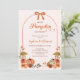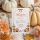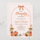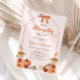 Celebre sua abóbora no caminho com este charmoso convite de chá de fraldas para uma garota. Apresentando abóboras brancas com um arco doce e cercadas por flores cor-de-rosa, laranja e laranja queimadas, este design de outono combina o estilo "boho" e "coquete" para a perfeita celebração sazonal. Personalize com os detalhes do seu partido para criar que os hóspedes de manutenção amarão.