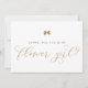 Linda proposta de tema parisiense para menina de flores em cartão plano. Peça a familiares e amigos para fazerem parte do seu casamento com este cartão personalizado "Você será minha menina de flores". Ele apresenta um arco de fita dourada moderno. Personalize adicionando um nome e mensagem.