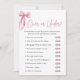 Eleve a diversão com nosso Jogo de Chá de Noiva 'Acima ou Abaixo' apresentando um design elegante de arco rosa. Os convidados se divertirão adivinhando se certos fatos relacionados ao casamento estão acima ou abaixo do número correto, adicionando um toque delicioso à sua celebração. Este jogo estimula a competição amigável e o riso, tornando-se uma adição memorável às festividades do seu chá de noiva.