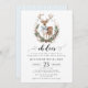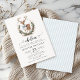 Abraçar o charme festivo com o nosso elegante convite para chá da corda d'água de Natal. Adorado com bagas de inverno, ramos de pinheiros, flores secas, e um delicioso veado vestindo um arco azul, este convite expele o calor das férias. A mensagem brincalhona, 'Oh veado, um doce bebê está quase aqui', adiciona um toque alegre à celebração do seu chá de bebê.