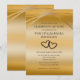 Convide amigos e familiares para uma bela festa de bodas de ouro de 50 anos. Personalize este convite de aniversário único e elegante com os nomes do casal, endereço do evento, horário e data da festa e mais texto editável conforme necessário. Eu criei este design original moderno de arco swooping em tom dourado em um gradiente bege para você. Não é folha de ouro. A tipografia preta contemporânea simples pode ser editada. Os dois corações entrelaçados dão um toque romântico. A escrita simples e elegante que diz "celebrando 50 anos" pode ser editada para qualquer número para outro ano de aniversário, se necessário.