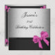 Todos os eventos, celebrações, anúncios e convites de festas de aniversários. Apropriado para todos os aniversários e eventos da idade. Rsvp está disponível em cima do pedido no estilo similar. O preto à moda bonito do carvão vegetal e o brilho metálico de prata mergulhados com a fita preta do brilho e cetim cor-de-rosa curvam o partido de aniversário de 21 anos. Personalize para toda a ocasião e ao estilo da mudança do texto.