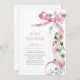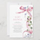 Arco elegante Ribbon Wildflower Pink Convite para Chá de fraldas Este convite elegante apresenta um belo arco rosa, delicadas flores silvestres de aquarela e tipografia clássica.