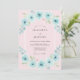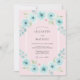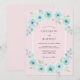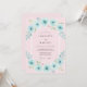 Um delicado arco de flores aqua e folhagem verde suave embeleza este design romântico. O efeito suave de aquarela cria uma atmosfera sonhadora e etérea perfeita para uma reunião caprichosa. Tons rosa suave fornecem um fundo sutil e complementar às flores vibrantes.