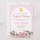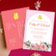 Convite Arco floral branco rosa Bilíngue do casamento chin