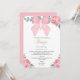 Este convite foi decorado com um arco rosa grande e, uma cruz dourada e flores rosa.