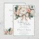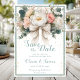 Encantador salve o cartão de data com flores aquáticas, um arco pastel macio e delicados sotaques de confete de ouro. Um design romântico e eterno para compartilhar seu anúncio especial do dia do casamento com elegância.