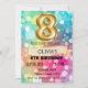 Apresente a próxima festa de aniversário do seu filho com o nosso Convite de aniversário Vibrant 8º! Projetado com amor e criatividade, este convite é perfeito para dar o tom para uma celebração divertida e memorável. Nosso oitavo Convite de aniversário apresenta uma paleta de cores divertida que irá capturar seus convidados logo no momento em que eles abrirem o envelope. O design inclui uma mistura deliciosa de matizes vibrantes, de amarelos ensolarados a azuis reais e verdes exuberantes, fazer adequado para rapazes e raparigas. A frente do cartão mostra um grande e ousado "8" rodeado por estrelas cintilantes, balões e confete, simbolizando a alegria e entusiasmo de girar quatro. O cartão de convite fornece amplo espaço para todos os detalhes vitais da parte: data, hora, local e informações de RSVP. Com esses 8º Convites de festas de aniversários Vibrantes, você não está apenas convidando convidados para uma festa; você está dando a eles uma espiada na diversão e festividades que esperam. Então, por que esperar? Comece os preparativos do seu partido com estes convites coloridos e interessantes!
