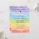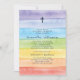 Composto por uma escrita cursiva e uma tipografia serif; Tudo num fundo branco. Uma cruz simples decora sutilmente o arco-íris.