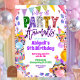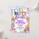 Convite de Aniversário Arco-íris Colorido Lantejoulas Brilho Safari, Convite de Aniversário Animais da Festa Coloridos