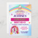 Arco-íris brilhante e colorido e unicórnio em qualquer convite de aniversário etário, mude o texto para qualquer coisa que você quiser quando solicitar