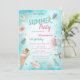 Estes convites apresentam folhas de palma, arco-íris sobre fundo azul. Este convite é facilmente personalizado para o seu evento simplesmente adicionando os seus detalhes.