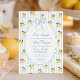 Celebre o amor com o estilo cítrico! Este chá de panela "Ela Encontrou Seu Preto Principal" apresenta limões de aquarela frescos, listras claras azuis e brancas, e uma elegante estrutura de arco. Um design de música lúdico e chique perfeito para um chá de panela com tema limão ou inspirado em Amalfi. Personalize facilmente com os detalhes do evento.