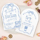 Convite Arco moderno desenhado à mão excêntrico AZUL casam