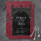 Transporte seus convidados para um mundo de elegância sombria e encantadora com nosso convite de casamento gótico vintage. O fundo vermelho burgundy profundo e envelhecido prepara o cenário para um contraste marcante, à medida que o texto branco em negrito emerge de caixas de texto pretas intrincadas. No ápice deste convite, uma borda gótica tridimensional adornada com um arco gótico preto régio captura a essência do mistério e do romance. A parte de trás é adornada com duas videiras entrelaçadas de rosas pretas formando sutilmente um coração em torno de dois corvos abraçados, o que adiciona um toque de charme dramático. Desperte a magia e defina o tom para um dia de casamento inesquecível. Criado por Simply Farmhouse Press.