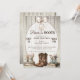 Celebre a alegria de um pequeno no caminho com este convite revelador de gênero rústico, desenhado em um estilo quente, perfeito para qualquer celebração inspirada no país. Apresentando uma charmosa mistura de elementos design: botas aquáticas de cowboy próximas a jarras de pedreiro cheias de flores silvestres. Este convite combina elegância rústica com uma sensação aconchegante de fazenda. Um pano de fundo macio de madeira bege, emparelhado com um arco de cetim caprichoso e um manchete em negrito "Arcos ou inicializações", define o tom para uma reunião casual, mas na moda. Perfeito para os pais a serem que amam charme ocidental, paletas neutras e um toque de sofisticação de retorno, esta design funciona lindamente para festas ao ar livre, locais de celeiro ou celebrações acolhedoras.