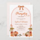 Celebre sua abóbora no caminho com este charmoso convite de chá de fraldas para uma garota. Apresentando abóboras brancas com um arco doce e cercadas por flores cor-de-rosa, laranja e laranja queimadas, este design de outono combina o estilo "boho" e "coquete" para a perfeita celebração sazonal. Personalize com os detalhes do seu partido para criar que os hóspedes de manutenção amarão.