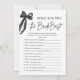 O Arco Negro que conhece o melhor jogo de Chá de panela da noiva é uma maneira divertida e elegante de entreter convidados enquanto celebra a futura noiva! Apresentando um design arco preto chic, este jogo desafia amigos e familiares a responderem perguntas sobre a noiva, de suas coisas favoritas aos seus momentos mais memoráveis. É o quebra-gelo perfeito para juntar todos e criar memórias cheias de risos. Adicione um toque de sofisticação ao seu chá de panela com este na moda e jogue! ✨ 🎀 👰
