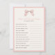 Perguntas editáveis sobre o título do jogo e texto para o chá de fraldas ou chá de panela. Como você sabe que a mãe é, quem sabe o melhor jogo de mamães. Apresenta um arco pintado manualmente com xadrez sutil em Rosas claro e fundo de marfim; borda e cor de fundo editáveis em frente e atrás.