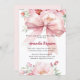 Um fundo branco elegante, decorado com um grande arco rosa e flores cor-de-rosa. Personalize e adicione um nome e detalhes da parte. Fundo: fundo rosa suave.