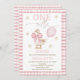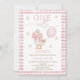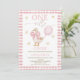 Arco Rosa Um Bobo Ganso primeiro aniversario Convite Um bobo ganha primeiro convite de aniversário com um ganso bonito, arco rosa e balão, e uma palavra caligráfica moderna em castanho. Este convite de aniversário de ganso de um bobo também apresenta algumas margaridas e um padrão de xadrez rosa.