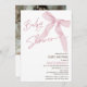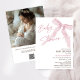 Arco rosa moderno Chá de fraldas QR Code Convite chá de fraldas Suave e simples arco rosa temático convite com um título de caligrafia moderna com um arco cor de coração e cor de água rosa. Este convite para chás de fraldas para meninas também apresenta uma foto no verso e um código QR e uma mensagem no verso.