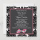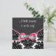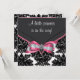 Damasco preto e branco com elegante convite de chá de fraldas de arco de diamante rosa. Adicione seus detalhes à parte frontal e traseira deste adorável convite para chás de fraldas rosa e preto damask simplesmente escolhendo o botão "Personalizar!" para começar a adicionar os detalhes do evento, estilo da fonte, tamanho da fonte e cor e texto. Observe que todos os designs de convite que você encontrará no Zazzle são gráficos impressos em estoque de papel plano sem joias reais, arcos, levantados, gravados em relevo ou peças ou peças adicionadas. com