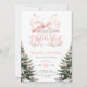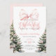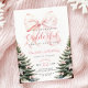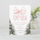 Arco rosa Winter Onerderland Girl primeiro aniversario Invitation with pinheiros and pink arco Details.