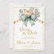 Anuncie seu dia especial em estilo com este elegante convite para o casamento "Salve a data". Apresentando florais de aquarela em blush, marfim e verde, acentuados por um sofisticado arco verde de sábado e detalhes de confetti de ouro, este design expele romance de eterno. Perfeito para casais planejando uma celebração chic, clássica ou inspirada no jardim, ele dá um tom gracioso para seu próximo casamento. Ideal para casamentos de outono ou primavera.