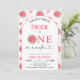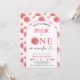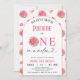 Arca Verde Vermelha Moderna Em Um primeiro aniversario Melão Convite Melão Melancia Doce ou tema melão Primeiro convite de aniversário para uma menina com fatia de melancia redonda, arco branco, texto de caligrafia moderno com coração e padrão de melancia. Este em um primeiro convite de aniversário de melão é ideal para alguém que procura um verão moderno ou um primeiro convite de aniversário de melão.