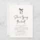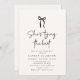 Um chá de panela caprichoso e moderno que apresenta uma ilustração divertida do arco e uma letra elegante do roteiro com a frase "casando dela". O design preto e branco minimalista cria uma estética chic e eterno, perfeita para celebrar o estilo da noiva. Ideal para aqueles que amam um olhar moderno, mas romântico.