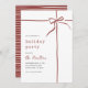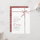 Convide seus hóspedes em estilo com nosso convite para o Feriado do Arco Vermelho Chic! A frente desta placa tem uma fita vermelha e um arco desenhados à mão, de forma que a placa parece ser um presente! Os detalhes do partido são impressos no lado esquerdo em um layout chic e minimalista, com "festas de feriado" em letras simples de serifa vermelha e os nomes dos hospedeiros em letras elegantes e vermelhas de script. Os detalhes se seguem em uma simples tipografia serifônica, mantendo a design limpa e sofisticada. O verso completa o olhar com listras brancas desenhadas à mão contra um fundo vermelho festivo. Perfeito para aqueles que amam designs modernos e minimalistas com uma dica de capricho e charme!