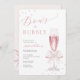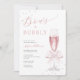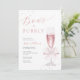 Este convite elegante apresenta um copo de champanhe cor-de-rosa adornado com um arco e pérolas cor-de-rosa, com pérolas adicionais ao fundo. Perfeito para um brunch ou brunch bridal moderno e celebração à bolha, o design de aquarela e o roteiro elegante de caligrafia adicionam um toque de sofisticação. Personalize-o com os detalhes do seu evento para criar um na moda e um convite memorável.