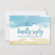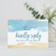 Este cartão de RSVP de areia e música marítima é perfeito para um casamento na praia. O desenho abstrato apresenta textura amarela e azul de aquarela que é arranjada para trazer vibrações oceânicas à margem. Crie sua lista de convidados de casamento e sua lista de músicas de dança de uma só vez! Este cartão de resposta do casamento convenientemente pergunta aos hóspedes se eles serão capazes de ir ao seu casamento, e também que música os fará dançar.