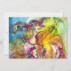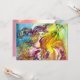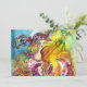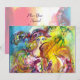Colorida, caprichosa e vibrante pintura em aquarela em cores amarelo, roxo e azul brilhantes inspirada no Carnaval de Veneza. Arlecchina é a contrapartida feminina de Harlequim