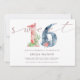 Letra aquosa floral "16" com folha de ouro rosa para escrita personalizada "doce" e disposição paisagística moderna com todas as informações em letra elegante serif. O verso contém as mesmas barras de paleta de aquarela vermelha e azul para uma aparência completa. Compare este convite com mais itens correspondentes da nossa coleção "Lado floral" na nossa loja.