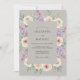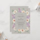 A delicada arte floral embeleza este design, apresentando rosas cor de pêssego suaves e flores de lilás aéreas. Um clima suave e romântico é evocado, perfeito para uma ocasião refinada. A paleta de cores combina neutros suaves com tons florais suaves.