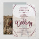 Um convite de casamento moderno e simples com duas fotos, com uma cobertura branca, um quadro de borda vermelho e uma letra elegante, adicione 2 de sua foto favorita. Um casamento simples e elegante.