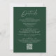 Convites de casamento simples e elegantes, todos em um, com um roteiro branco e manuscrito, misturado com letras modernas, contra um fundo verde-caçador. Personalize a frente do convite de casamento minimalista com seu nome e detalhes do casamento. Personalize a parte de trás do convite com detalhes de casamento, como informações de recepção, acomodações de hotel, instruções de RSVP e site de casamento. Adicione o link desejado do site de casamento ao modelo de Código QR fornecido para que seus convidados possam facilmente RSVP on-line e exibir informações adicionais sobre o casamento. Os convites de casamento "tudo em um" verdes caçadores são a escolha perfeita para casamentos modernos.